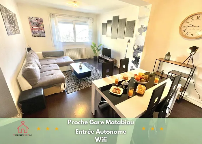 トゥールーズ・サンセルナン教会はこの56m²のアパート数歩の距離で、Parking Gare de Toulouse Matabiauからたった450メートル先にあります。 アパートはジャンヌ・ダルク地下鉄駅から徒歩で5分で、Toulouses Croisieresから徒歩でわずか6分です。